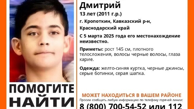 Отряд «Лиза Алерт» бросил силы на поиски школьника из Кропоткина. 13-летний мальчик не вернулся домой 5 марта. Родители не могут связаться с ним почти сутки, о его местонахождении ничего неизвестно.