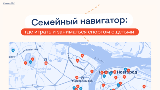АНО «Институт демографического развития» разработала «Семейный навигатор» — карту зон активного отдыха для нижегородских семей, в которых можно устроить цифровой детокс. Она помогает легко ориентироваться в игровой и спортивной инфраструктуре Нижнего Новгорода, позволяя родителям выбирать подходящие площадки по району, возрасту ребенка и погодным условиям в любое время года. На карте представлена информация о 32 лучших городских пространствах: это детские площадки, веревочные городки, скейт-парки, а также спортплощадки для воркаута, баскетбола и других видов спорта. Карта находится в разделе «Наши продукты» на официальном сайте института. Ее можно скачать бесплатно в формате PDF, чтобы держать под рукой и свободно пользоваться даже без доступа в интернет. Инициатива направлена на привлечение внимания к популярным досуговым пространствам и стимулирование активного образа жизни среди семей с детьми. «Прекрасный способ устроить цифровой детокс — выбраться на прогулку с детьми или заняться спортом всей семьей. Мы разработали путеводитель по городским объектам, открытым для посещения в любой сезон. В выборку вошли только благоустроенные и безопасные площадки, где семьям будет комфортно проводить время и укреплять здоровые привычки. Возможно, кто-то вдохновится на новое и непривычное для себя занятие или получит стимул вернуться к любимому хобби вновь», — рассказал директор Института демографического развития Евгений Журавлев. Проект реализуется в соответствии с целями нацпроекта «Семья» в рамках Пятилетия семьи Нижегородской области.