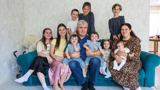 В семье Сусловых из Дзержинска девять детей от двух месяцев до 18 лет. Семья пережила серьёзные испытания, которые сплотили их ещё больше. Недавно Сусловы получили в подарок от правительства региона девятиместный автомобиль «Соболь». Теперь у каждого ребёнка есть своё место в машине, и семья может отправляться в путешествия в полном составе. Многодетность как традиция Александр и Ирина познакомились у Ирины дома – Александр приходил в гости к её братьям. «Я родилась в Петряевке, в многодетной семья, была одиннадцатым ребёнком, а всего у папы с мамой 16 детей – восемь девочек и восемь мальчиков, – рассказывает Ирина. – Мама имеет медаль «Мать-героиня» и региональную медаль «Родительская слава». У нас был большой уютный дом, и к нам любили приходить друзья. Одним из них был Саша. Он очень скромный, стеснительный, и я сначала не выделяла его особо. Но я ему приглянулась, и он сделал мне предложение. Мне было 19 лет, он старше меня на восемь лет, и это тоже сыграло свою роль – я подумала, что буду за ним как за каменной стеной. Два месяца пообщались и поженились. И вот уже 22 года мы в браке». Через испытания Первый ребёнок пары родился с очень тяжёлыми диагнозами – ДЦП, органическое поражение головного мозга. «Сейчас Анечке был бы 21 год, но пять лет назад она умерла, это был огромный стресс для нас, – признаётся Ирина. – Помогли выстоять дети и вера в Бога. Через три года после рождения первого ребёнка родилась наша Даша. Даша была для нас как подарок с небес, воплощением всего самого лучшего: рано начала говорить, рано ходить, помогала с постепенно появлявшимися детьми. Сейчас ей 18, она студентка педколледжа, окончила музыкальную школу по классу фортепиано». Музыке учатся и другие дочери – 11‑летняя София и 8‑летняя Люся, а 7‑летняя Вика поступила в музыкальную школу в этом году. Все школьники ходят также на курсы английского языка. Единственному сыну Тимофею в октябре исполняется шесть, он занимается в ФОКе плаванием, коньками и футболом. Остальные совсем малыши: Кристине – 2,5 года, двойняшкам Инне и Алина – полтора года, а младшей Еве – два месяца. «Все мои беременности протекали идеально, разве что давление ближе к родам поднималось, – говорит Ирина. – Врачи удивлялись: десятые роды, а не к чему придраться». Но через испытания семья проходила не раз. Почти сразу после возвращения из роддома двойняшки подхватили инфекцию, и вместе с мамой их отправили на скорой в Нижний Новгород в реанимацию на ИВЛ. «Столько пережили тогда, боялись, что не спасут, – признаётся мама.– Но сейчас всё хорошо, они уже бегают, здоровенькие. А младшая Ева была нам неожиданным подарком после такого тяжёлого испытания. Господь дал нам её, а мы с радостью приняли». Кстати, большинство семей братьев и сестёр Ирины тоже многодетные – у кого трое детей, у кого пятеро. А в семье одной из сестёр тоже девять детей. Полная поддержка Когда семья стала расти, Сусловы купили большой дом в посёлке Дачный – в черте Дзержинска, но по сути за городом, на свежем воздухе. Детей в школу, на кружки и в садик мама отвозит на машине. Ирина признаётся: без поддержки государства пришлось бы нелегко. «Наше государство поддерживает многодетные семьи, особенно у нас в Нижегородской области – это просто феномен какой-то! – считает многодетная мама. – Миллион за ребёнка мы вложили в ипотеку. Ведь 