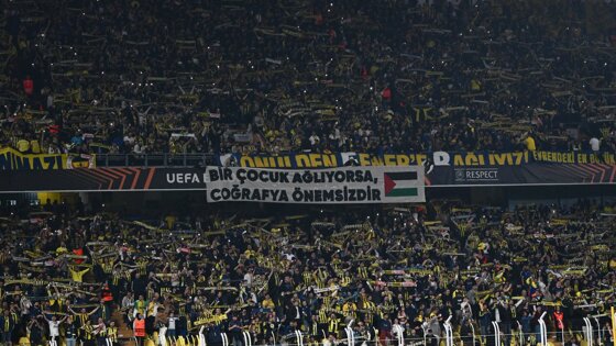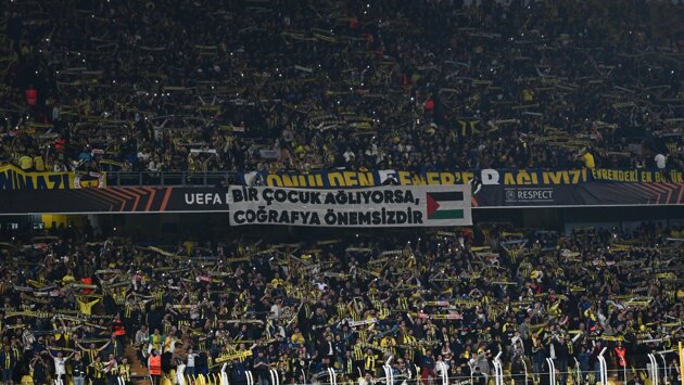 Перед матчем болельщики «Фенербахче» вывесили баннер с флагом Палестины и надписью: «Если ребенок плачет, география не имеет значения».