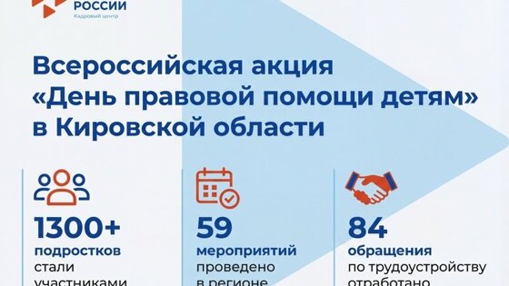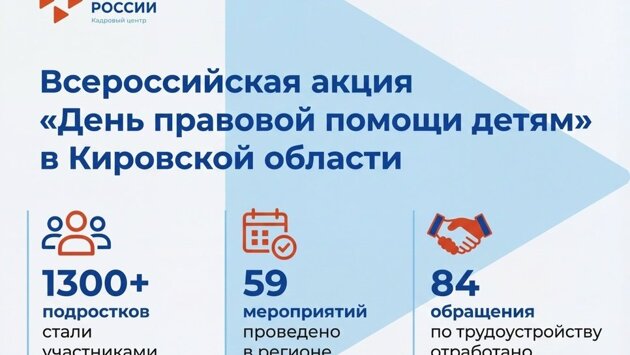 Ежегодно специалисты Кадровых центров «Работа России» Кировской области принимают участие в правовом просвещении несовершеннолетних граждан и их законных представителей. В 2025 году в рамках акции «День правовой помощи детям» в регионе проведено 59 мероприятий, участниками которых стали более 1300 подростков.