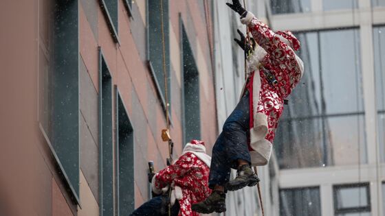 Акция «Новогодний десант Дедов Морозов», в рамках которой работники столичного Департамента ГОЧСиПБ перевоплощаются в сказочных персонажей и отправляются поздравлять маленьких пациентов московских больниц, уже давно стала доброй традицией. И год от года волшебство только набирает обороты: в этом году «Новогодний десант Дедов Морозов» поздравил с наступающими праздниками маленьких пациентов десяти лечебных учреждений столицы. Первыми, кого навестило это удивительное поздравление, стали пациенты Детской городской клинической больницы святого Владимира. Пока Деды Морозы при помощи альпинистского снаряжения спускались с крыши больницы и заглядывали в окна палат, очаровательные Снегурочки парили в люльках автолестниц и осыпали малышей воздушными поцелуями. Главная цель этой акции – подарить ребятам немного радости и улыбок, заставить поверить в новогоднее чудо.