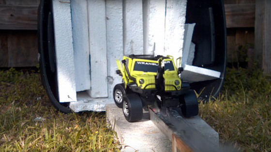 Владелец канала The Backyard Scientist прикрепил обыкновенный кухонный нож к алюминиевой заготовке с самодельной петардой внутри, поставил всю конструкцию на рельсы, смазанные графитовой пастой, чтобы нож мог легко скользить, и, разумеется, заснял все это на видео. Целая тушка цыпленка, игрушечный грузовик, ананас и куча других фруктов пострадали во время опытов. Разгоняясь до более 240 км/ч, обыкновенный кухонный нож приобрел воистину смертоносные свойства, разрезая надвое все, от мяса до пластика. В общем, лучше ничего подобного не повторять.