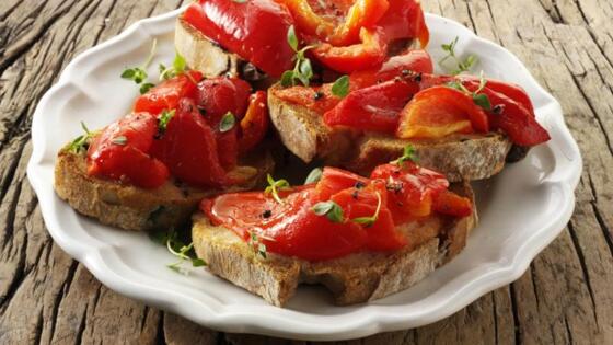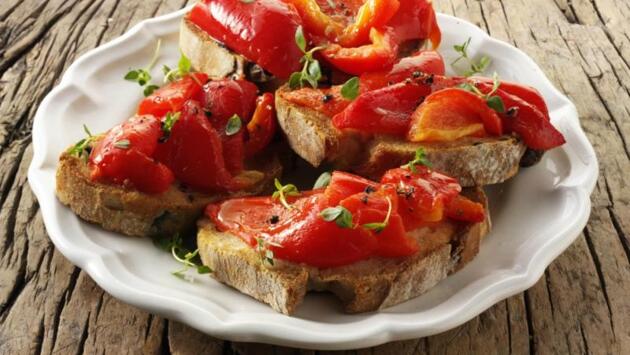 Рецепт дня: Брускетта с козьим сыром и запеченными перцами