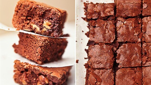 Ингредиенты Сливочное масло: 175 гЧерный шоколад 70%: 145 гСахар: 175 гЯйцо куриное: 4 штукиПшеничная мука: 140 гГрецкие орехи: 145 г Инструкция приготовления Орехи помыть, выложить на бумагу для выпекания в один слой и обжарить в духовке при температуре 150 градусов (около 20 минут).Разогрейте духовку до 180 С. В квадратную форму (24*24) выложите крест-накрест 2 полоски бумаги для выпекания, оставив края выступающими за форму, смажьте сливочным маслом дно и борта формы. На водяной бане растопите шоколад и слегка остудите его. Шоколад должен быть чуть теплым, когда вы начнете смешивать его с другими ингредиентами. В миксере взбейте масло до мягкого кремообразного состояния, добавьте шоколад. Постепенно, по одному добавьте яйца, сахар, муку и орехи. Распределите тесто в форме и выровняйте поверхность при помощи силиконовой лопаточки. Выпекать 20-25 минут при температуре 180 С. Результат должен быть следующим: поверхность – сухая и достаточно плотная корочка, а внутри – влажное тесто (проверить зубочисткой или ножом). После выпекания корж должен постоять около 30 минут в форме, после чего, используя выступающие края бумаги для выпекания, достать его из формы и дать еще 30 минут на окончательное остывание. Нарезать корж на равные квадраты. Хранить при комнатной температуре, в контейнере или затянутыми пищевой пленкой.