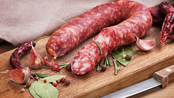 Для изготовления колбасных изделий обязательно понадобятся очищенные говяжьи или свиные кишки в сушеном виде, которые можно купить, как правило, в мясных магазинах. В пачке обычно около 10 метров. После замачивания в течение двух часов в воде оболочка приобретает первоначальные свойства и восстанавливает заявленную длину.
