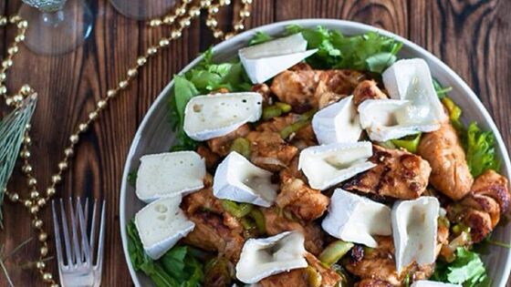 Если вы хотите удивить и порадовать своих близких изысканным блюдом за новогодним столом, предлагаемый рецепт вам в этом обязательно поможет. Что может быть лучше сочетания нежной семги и сыра? Главное, подать такое блюдо теплым. Если вы хотите отойти от привычной схемы новогоднего застолья с салатом оливье и селедкой под шубой, присмотритесь к рецепту, который предлагает фудблогер Анастасия Матвеева. Сочетание изысканных ингредиентов не оставит равнодушными ваших гостей и близких. Готовится такое блюдо быстро, главное, заранее запастись нужными продуктами. Ингредиенты: 500 гр семги (лосося) 100 гр камамбера Пучок рукколы 1/3 пучка кинзы 1 лук-порей 5 ст.л. французской горчицы с зёрнами 1 ст.л. лимонного сока 1 ч.л. соевого соуса 1 ст.л. меда Оливковое масло для жарки Приготовление: 1. Лосось нарезать на ломтики. Горчицу смешать в миске с лимонным соком, выложить рыбу, перемешать тщательно, чтобы кусочки рыбы были покрыты горчицей со всех сторон. 2. В сковороде сильно разогреть оливковое масло, обжарить кусочки рыбы по 2 минуты со всех сторон. Готовую рыбу выложить а тарелку. 3. Нарезать кольцами лук-порей (белую часть). В ту же сковородку, где жарилась рыба, налить 1 ст.л. воды. Выложить порей, обжаривать 5-7 минут. 4. В сковородку налить мёд и соевый соус, выложить рыбу, осторожно перемешать, прогреть. 5. На блюдо выложить рукколу и кинзу, сверху выложить рыбу с луком-пореем, полито соусом. 6. Камамбер порезать на ломтики, выложить сверху на салат, подавать тёплым. ***** Режу салаты, украшаю елку, примеряю платье, наношу макияж, смотрю кино, ем мандаринки - все о Новом годе 2018!
