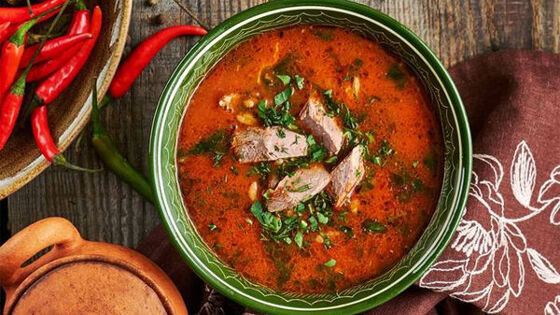 Позади бодрое и вкусное утро с аджарским хачапури, кашей эларджи и насыщенным чирбули. Часовая стрелка подкралась к двенадцати, томный полдень вступает в свои права. Грузины любят вставать пораньше, чтобы после плотного завтрака успеть проголодаться к обеду. Суп в горной традиции — подготовка организма к плотному и тяжелому ужину, поэтому хозяйки делают их наваристыми и не жалеют специй и соусов. Харчо Густой и яркий суп харчо варят на основе пюре из неспелой алычи, которое в домашних условиях легко заменить покупным соусом ткемали, томатной пастой или аджикой. Они добавят необходимую кислинку и пикантность. Лучше использовать для супа длиннозерный рис, который предварительно настаивают в холодной воде и промывают раз пять. Вам понадобится: мясо (говядина или телятина — грудинка или мясо на мозговой кости) — 400 г рис длиннозерный — 50 г морковь — 1 шт. лук — 2 шт. грецкие орехи очищенные — 150 г чеснок — 1 шт. соус ткемали (самодельный или покупной) — половина стакана петрушка укроп кинза хмели-сунели кориандр черный перец или смесь «Четыре перца» острый перец — 1 стручок Шаг 1. Залейте мясо холодной водой, доведите до кипения. Томите на слабом огне два часа, после чего отделите мясо от кости, разделите его на части и закиньте обратно в бульон. Шаг 2. Добавьте в слегка кипящий бульон две ложки ткемали, а затем положите нарезанные соломкой лук и морковь. Варите на слабом огне под крышкой 30 минут. Шаг 3. Через полчаса всыпьте рис в бульон и варите 10 минут. Шаг 4. Обжарьте в масле на сковороде орехи и тщательно разотрите их в ступке до однородности. Смешайте массу с измельченным чесноком и добавьте в суп. Оставьте вариться на 15 минут. Шаг 5. В конце добавьте лавровый лист, соль, перец, хмели-сунели, кориандр и другие специи. Поварите две минуты и выключите огонь. Дайте супу настояться не менее десяти минут. Чихиртма из курицы Внешне чихиртма похожа на крем-суп, но технология приготовления здесь совершенно другая. Густой вкусный суп по плотности напоминает сметану, а по вкусу — куриный бульон, но острый, с кислыми нотками. Вам понадобится: мясо курицы на косточке — 500 г лук — 3 шт. морковь — 1 шт. яйца — 2 шт. винный уксус — 2 ст. ложки мука — 2 ст. ложки зелень кинзы — 30 г молотый кориандр — 1/3 ч. ложки шафран или куркума — 1/3 ч. ложки соль, перец сливочное или растительное масло Шаг 1. Кладем курицу в воду и доводим бульон до кипения, периодически снимая пену. Затем добавляем целую очищенную луковицу, морковь и соль. Варим на слабом огне до готовности овощей и убираем их. Шаг 2. Режем лук кубиками, обваливаем их в муке и обжариваем на сковородке до золотистого цвета. Добавляем туда два половника бульона из кастрюли тушим две минуты. Шаг 3. В кастрюлю добавляем шафран или куркуму, кориандр, даем бульону минуту покипеть, затем кладем в него лук со сковороды и кипятим еще три минуты, после чего убираем с огня. Шаг 4. Взбиваем венчиком яйца, добавляем к ним винный уксус и полстакана бульона, перемешиваем до однородности. Шаг 5. Яичную смесь тонкой струйкой вливаем в суп, интенсивно помешивая, измельчаем куриное мясо, добавляем кинзу и мелко нарезанный зубчик чеснока. Ставим кастрюлю на плиту и доводим на маленьком огне до состояния, когда суп почти закипел, сразу снимаем его с плиты. Суп без зелени и пряностей — белая ворона на грузинском столе — хаш. Он напоминает х