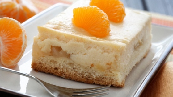 Готовим нежный фруктовый чизкейк. Фрукты – на ваш выбор. Ингредиенты Свежие фрукты 3 стакана сахар 2/3 стакана + 6 ст. ложек крахмал 2 ст. ложки ароматизированный желатин (по вашему выбору) 1 ст. ложка готовый корж для чизкейка (бисквитный или песочный) 1 шт. мягкий сливочный сыр (возможна замена жирным творогом) 170 г яйца (крупные) 2 шт. свежий лимонный сок 1 ст. ложка сметана 1 стакан песочная или бисквитная крошка по желанию Способ приготовления Предварительно разогрейте духовку до 180°С. Подготовьте свежие фрукты, почистив их, удалив сердцевину и порезав на небольшие кусочки размером около 1 см. Время готовки4 ч Количество персон8 чел Уровень сложностиСредне КухняАмериканская В большом сотейнике смешайте нарезанные фрукты с 1 столовой ложкой воды, 2/3 стакана сахара и крахмалом. Поставьте на плиту на средний огонь. Время от времени помешивайте, пока смесь не закипит. Снимите сотейник с огня и добавьте желатин. Тщательно перемешайте, затем вылейте смесь на подготовленные коржи. Отставьте в сторону. Смешайте сливочный сыр, яйца, свежий лимонный сок, 6 столовых ложек сахара и сметану в большой миске. Перемешайте миксером на средней скорости, пока смесь не станет густой и кремообразной. Вылейте сырную смесь поверх коржа с фруктами. Резиновой лопаткойраспределите крем равномерно. Сверху посыпьте крошкой и поместите фруктовый чизкейк в духовку. Выпекайте 25-30 минут. Готовый чизкейк должен быть плотным в центре, если его слегка встряхнуть. Вынув из духовки, оставьте остывать при комнатной температуре минут 30. Перед подачей на стол выдержите чизкейк 2 часа в холодильнике. Кстати, при выборе ароматизированного желатина подойдёт аромат ревеня, яблока, ананаса и вишни, а также другие по вашему вкусу. Используйте такой желатин, который подходит к выбранным вами фруктам. Например, малина хорошо сочетается с ревенем, лимон с яблоками или ананасами, а вишня со сливами.