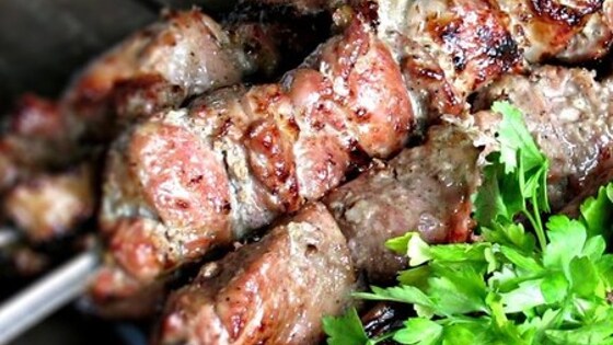 Многие любители шашлыка уверенно говорят, что самое лучшее мясо для этого блюда — баранина. И они правы, ведь изначальное приготовление данного мясного блюда было именно из мякоти барана. О том, как правильно готовить шашлык из этого мяса, мало кто знает. В данной статье прочитаем, как приготовить шашлык из баранины, рассмотрим рецепты самых вкусных и популярных маринадов, узнаем, какие ингредиенты добавить, чтоб мясо было мягкое, сочное и ароматное. Шашлык из баранины с добавлением уксуса Самым популярным и проверенным рецептом считается шашлык из баранины с добавлением уксуса. Он размягчит все жилки и мясо получится мягкое и сочное. Ингредиенты: кусок мяса барана — 0,5 кг; лука репчатого — 3 штуки; уксуса 9% — 1 столовую ложку; оливкового масла — 1 столовую ложку; мяты — 1 веточку; петрушки — один небольшой пучок; специй, соли и перца — на усмотрение повара. Процесс приготовления: Выбранный кусок мяса нарежьте порционно, чтоб удобно было нанизывать на шампур или укладывать на барбекю. Удалите пленочки и жилки, промойте под струей проточной воды и поместите в глубокую емкость. Сюда же добавьте любимых специй, необходимое количество соли, перца, уксуса и оливкового масла. Все ингредиенты перемешайте. Затем займитесь луком, его надо очистить и нарезать на кольца. Подготовленную и помытую зелень порвите на небольшие кусочки. Все это добавьте в емкость с мясом, хорошо смешайте, чтоб появился сок. Теперь накройте крышкой и уберите в холод. Хорошо, если мясо помаринуется часов 8 (можно поставить на ночь), тогда в готовом виде оно будет ароматным и сочным. Наутро его уже можно жарить. Шашлык из баранины с маринадом из киви и лимона Киви делает с мясом настоящие чудеса! Бараний шашлык немного жестковат, но этот плод сделает его мягким и ароматным. Ингредиенты: кусок мяса барана — 500 гр.; половину плода киви; кинзы — маленький пучок; лука репчатого — 2 штуки; половину лимона; чеснока — 1 зубок; помидоров — 1 штуку; масла растительного — 40 грамм; сильногазированной минеральной воды — 150 мл; соли и черного молотого перца — на усмотрение повара. Процесс приготовления: Нарежьте кусок бараньего мяса на средние порции, промойте под струей проточной воды. Две очищенные луковицы и помидор нарежьте крупными дольками, измельчите в мясорубке или блендере. Зубочки чеснока и пучок кинзы мелко нашинкуйте. Переложите все подготовленные ингредиенты в глубокую тару, выдавите половину лимона. Затем его измельчите и добавьте в общую массу, посолите, поперчите на свое усмотрение, влейте необходимое количество минеральной воды, хорошо все помешайте. Чтоб блюдо было с пикантной изюминкой, очистите у киви кожицу, выдавите его в емкость, где уже перемешаны все ингредиенты, влейте нужное количество растительного масла, опять помешайте массу. Накройте тару с продуктами куском пищевой пленки, уберите в холод и оставьте там будущий шашлык на 6-8 часов. По истечении времени мясо можно жарить. Шашлык из баранины с кефиром Вкуснейшую баранину можно приготовить, замариновав мясо в кефире. По нижеописанному рецепту получится шашлык без специфического запаха, присущего мясу барана. Ингредиенты: кусок баранины — 1 кг; кефира — 200 мл; лука репчатого — 3-5 штук; чеснока — 1-2 зубочка; приправы шашлычной — на усмотрение повара; тимьяна — половину чайной ложки; соли и черного молото