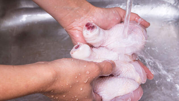 Мясо курицы, а также свинину, говядину и т.д. перед употреблением моют почти все, но делать этого не стоит. Бактерии, имеющиеся на сыром мясе, представляют угрозу для человека, и в итоге во время попытки помыть продукт микроорганизмы разлетаются, оседая на раковине, поверхностях и руках. Термическая обработка куда эффективнее справится с бактериями, а курицу можно отваривать дважды, сменив воду перед вторым разом.