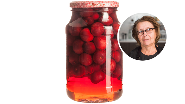 Компот появился в русских кулинарных справочниках в XVIII веке, до него на Руси были свои напитки из фруктов и ягод — взвар (или узвар) и морс. Сейчас узвар, компот и морс часто путают между собой, хотя на деле компот — это не просто сваренные с сахаром ягоды и фрукты. Технология приготовления компота подразумевает бланширование ягод и фруктов и последующее настаивание их в сахарном сиропе. Компот можно сварить из любых ягод и фруктов, хоть из свежей малины, хоть из сушеных слив. Он представляет собой идеальное утилизотто и идеальный способ консервации. Вишневый компот — отдельная история, наполненная своей собственной романтикой. Мы попросили рассказать о вишневом компоте маму друга редакции Жени Нечитайленко — Валентину. «По такому рецепту готовила моя мама. Бабушка готовила немного по-другому — она компот не закатывала. Раньше, лет сто назад, вообще варенья и компоты не закатывали, не было даже таких банок с крышками, какими пользуемся мы. Варенье, например, бабушка хранила в эмалированных ведрах, а чтобы оно не портилось, его как следует уваривали. С детства помню огромные вишневые деревья в саду — чтобы их обобрать, приходилось лезть на лестницу. В сезон я закрывала несколько десятков трехлитровых банок такого компота. Кстати, компот обычно закатывают в трехлитровые банки, потому что так он получается менее концентрированным — его можно открыть и сразу пить. А компот в литровых банках обычно более насыщенный, как сироп, его нужно разводить и дополнительно проваривать. Вишня в компоте отлично сочетается с яблоками — они становятся красноватого цвета и придают компоту дополнительную кислинку. В один сезон с вишней созревает смородина: лучше добавлять белую или красную, причем веточками, так красивее. Черную добавлять не имеет смысла — она такого же цвета, как вишня, потеряется. Можно добавлять крыжовник — он зеленый и кисловатый, будет и красиво, и вкусно. 1. Вишню надо очистить от плодоножек и листиков. Ягоды должны быть спелыми, потому что у недозрелой есть лишняя кислота во вкусе, а нам она в компоте не нужна. У мамы была вишня сорта «шпанка» — очень вкусная, сладкая, похожая на черешню, вот из нее компот прекрасный получался. А, например, вишня сорта «любка» спеет раньше, но она не такая сладкая, и цвет у нее светлее, не насыщенно-красный. Из нее и компот насыщенным не получится. Косточки из вишни вынимать не нужно. Обязательно косточки надо извлекать из абрикосов — в них много синильной кислоты. Компот из абрикосов с косточками можно хранить не больше года, иначе он станет опасным. Но я не рискую, когда варю компот из абрикосов детям: разрезаю фрукты пополам, извлекаю косточки, потом кладу половинки в банки, бланширую и закрываю крышками. 2.Вишню нужно как следует промыть под проточной водой. 3.Затем уложить ягоды в банки. Банки можно не стерилизовать, потому что сейчас мы будем заливать все кипятком, все само простерилизуется. У нас 1 кг вишни и две литровые банки: в каждую кладем по полкило ягоды: компот получится очень насыщенным, потом его можно будет разбавлять. В трехлитровые банки я кладу ягод столько же, сколько в пол-литровые: такая концентрация идеальна, если вы хотите открыть банку и сразу пить. 4.А вот крышки обязательно надо промыть и простерилизовать. Для этого их следует прокипятить в течение пяти минут. Крышки при э
