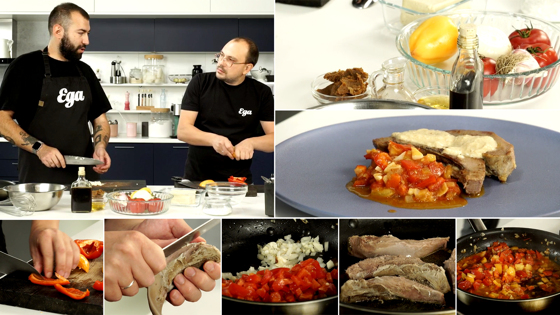 Мы начинаем второй сезон нашей передачи «Еда на ночь» — мы снова выходим по средам в 19.00 (в редких случаях по обстоятельствам — по четвергам) в прямой эфир на нашей странице в «Одноклассниках». И снова приглашаем на нашу редакционную кухню хороших шефов и готовим с ними блюда из сезонных продуктов. Первый гость второго сезона — Тахир Холикбердиев, основатель и совладелец краснодарского ресторана «Скотина» и московских ресторанов «Южане» и «Пирог мясника», а также мясной лавки «Ребро Адама». Тахир решил показать, как здорово сочетаются сезонные перцы и помидоры со свиным языком — а также с тофу.