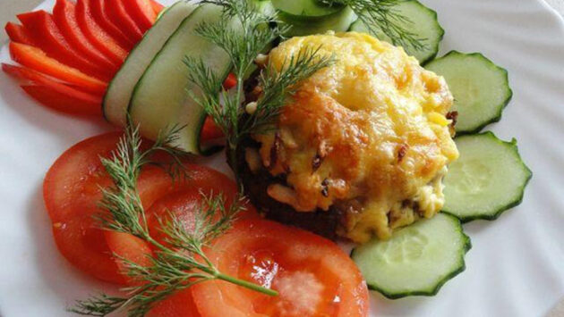 Необычные и очень вкусные котлеты! И выглядят крайне аппетитно! Такое блюдо можно подавать даже к праздничному столу, думаю, гостям понравится. За счет того, что котлеты не жарятся, а запекаются в духовке, «Стожки» получаются очень нежными и сочными. Кстати, если говорить об интересном названии блюда, то тут все просто — все ингредиенты выкладываются слоями друг на друга и в результате в сыром виде, когда котлеты уже будут посыпаны тертым сыром, они будут внешне очень похожи на стог сена. Не знаю каково на вкус сено, но котлеты «Стожки» очень даже хороши, просто восхитительны, мне понравились!) Попробуйте и вы! Нам понадобится: килограмм любого мясного фарша 4-5 небольших клубней картофеля пара средних луковиц 250 грамм твердого сыра 5 вареных яиц 3-4 зубчика чеснока около 100 грамм майонеза немного подсолнечного масла соль, перец — по вкусу. Ход действий: 1. В мясной фарш добавляем пропущенный через пресс чеснок, соль, перец, 1,5-2 столовых ложки майонеза, хорошенечко перемешиваем и даем немного настояться. 2. Тем временем нарезаем мелкими кубиками лук и обжариваем его в небольшом количестве масла до золотистого цвета. Натираем на крупной терке по отдельности яйца, сыр и картошку. В яйца добавляем 1-2 столовых ложки майонеза, перемешиваем. Картошку солим, перчим, перемешиваем. 3. Из полученного фарша формируем шарики, придавливаем их ладонями, чтобы получились котлеты круглой формы и выкладываем в смазанную маслом форму для запекания. Сверху на каждую котлетку выкладываем в форме стожка: жареный лук, затем яйца и картошку. Посыпаем все это дело сыром и смазываем майонезом. 4. Отправляем полученные «стожки» в горячую духовку на 35-40 минут (температура 180 градусов). Вам может понравится: 10 рецептов изумительных блюд из овощей Бодрое утро: 7 секретов вкусного кофе от бариста Быстрый торт Классические рецепты пасты 10 роскошных завтраков, на которые вы потратите всего 15 минут