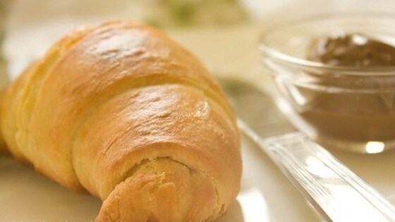 Ингредиенты Молоко: 2 столовые ложкиСлоеное тесто: 600 гNutella®: 250 г Инструкция приготовления Раскатайте тесто в прямоугольный пласт — очень тонко раскатывать не нужно. Разрежьте на треугольники. С широкой стороны каждого треугольника сделайте надрез (это нужно для того, чтобы можно было легко свернуть красивые круассаны).Ближе к широкой стороне положите чайную ложку шоколадной пасты. Плотно сверните круассаны (от основания треугольника к его вершине). Переложите на противень, накройте салфеткой и уберите минут на 15 в холодильник (это затормозит процесс подхода теста).Смажьте круассаны молоком и поставьте в разогретую до 180 градусов духовку минут на 20 (иными словами, пеките до золотистого цвета).