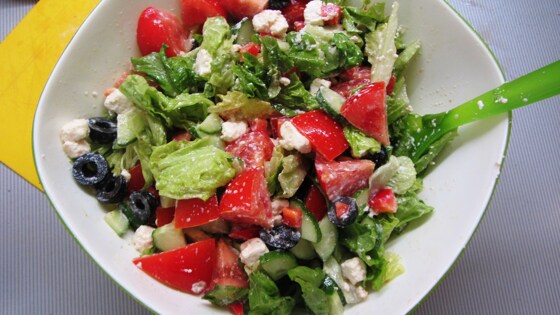 Ингредиенты Помидоры: 3 штукиОгурцы: 3 штукиСвежие листья шпината: 1 пучокМаслины без косточек: 20 штукСухарики: 100 гОливковое масло: 2 столовые ложкиСыр брынза: 150 гЯйцо куриное: 1 штука Инструкция приготовления Все ингредиенты крупно нарезать и заправить оливковым маслом.