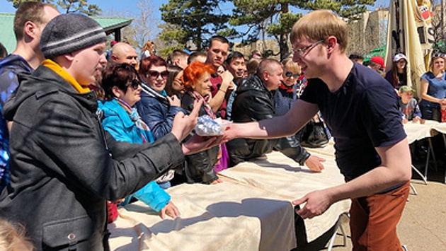 ЧИТА, 1 мая. /Корр. ТАСС Илья Баринов/. Жители Читы смогли бесплатно отведать бурятские буузы (аналог мантов) в рамках акции в читинском парке Дома офицеров. Для этого приготовили более 3 тыс. бууз. "Столько бууз мы раньше не лепили, - признался директор ресторана бурят-монгольской кухни "Звезда кочевника" Эрик Сангин. - Работа началась рано утром, за семь часов до начала мероприятия. Трудились 20 поваров. Сколько для приготовления трех тысяч бууз потребовалось мяса и теста, мы еще даже не считали". В городском парке установили юрту - традиционное жилище бурят-кочевников, возле которой еще за час до начала раздачи бууз собрались десятки желающих отведать блюдо. "В каждой порции по две буузы, мы с мужем взяли четыре порции - и себе, и детям. Буузы вкусные, сочные", - отметила читинка Марина. Посетил мероприятие также врио губернатора Забайкальского края Александр Осипов. "Знаете, что здесь сейчас происходит? Здесь устанавливается мировой рекорд. По поеданию бууз наш край точно не должен отставать, - пошутил он. - Причем каждому свой спорт: там ребята бегают (в городе проходит первомайская легкоатлетическая эстафета - прим. ТАСС), здесь ребята и девчата едят". Бурятские буузы родственны хинкали и мантам. Их готовят в специальных пароварках, начинкой для них служат фарш или рубленное мясо, а также репчатый лук. Блюдо традиционно едят руками, вначале выпивая бульон, образовавшийся во время приготовления.