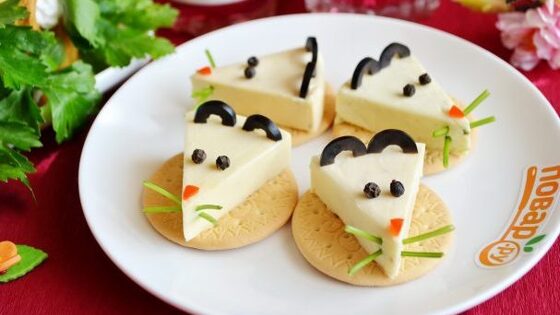 Грядущий 2020 год пройдёт под знаком Крысы. Чтобы украсить новогодний стол символом праздника, предлагаем три тематических рецепта. 1. Ушастый крекер Эта закуска особенно порадует привередливых детей. Вам понадобятся круглые несладкие крекеры, наверх выложите плавленый сырок любимого вкуса, а с помощью кусочков маслин можно сделать ушки. Для имитации глаз используйте кунжут или горошинки чёрного перца, а для остального декора подойдёт соломка из огурца. 2. Тем, кто устал от оливье, понравится салат «Мышка» В равных объёмах смешайте ветчину, картофель отварной, яйца и соленый огурец. Лук и специи добавьте по вкусу. В качестве заправки используйте майонез, а для украшения понадобится сыр, натёртый на крупной терке. Для новогодних мышек, которые размещаются на салате, отварите перепелиные яйца, разрежьте пополам, глазки и носик сделайте из чёрного перца, а для ушей и хвоста используйте сыр. 3. Ну а на десерт предлагаем "Мышиные капкейки" Вот несколько примеров декора капкейков для новогоднего стола. В качестве теста можно использовать известный любой хозяйке бисквит. Сложность декорирования зависит от ваших кондитерских навыков. Используйте подручные материалы! Приятного аппетита!