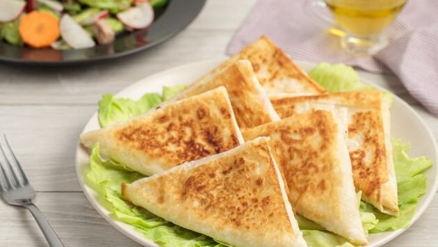 [caption id="attachment_1279589" align="alignnone" width="940"] pryanik-app.online[/caption] Ингредиенты: 1) Лаваш тонкий 2) Сыр 3) Белок от яйца 4) Помидоры 5) Зелень свежая 6) Сливочное масло или мягкий плавленый или творожный сыр. Способ приготовления: Для начинки: 1 ) Натираем на крупной терке любой сыр, затем нарезанную свежую зелень по своему вкусу, сырой белок от яйца и перемешиваем. 2 ) Лаваш нарезаем на широкие полоски, смазываем тонким слоем сливочным маслом или мягким плавленым или творожным сыром, добавляем начинку и заворачиваем треугольником или так, как удобно вам! 3 ) По желанию можно положить кружочки помидора или любой колбаски. Обжариваем с двух сторон на сухой сковороде без масла. [caption id="attachment_1279590" align="alignnone" width="1280"] youtube.com[/caption]