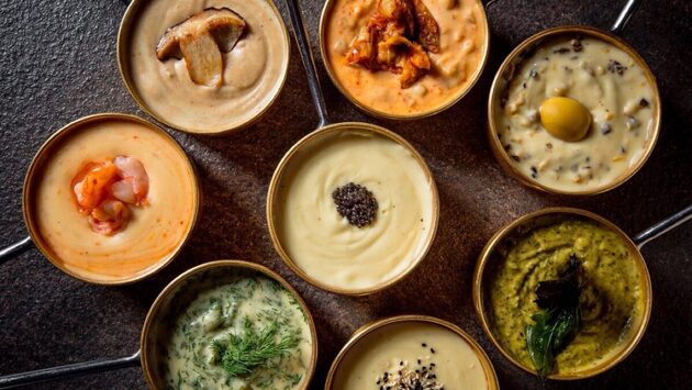 Здесь он уже адаптировал рецепт под российский локальный продукт, и добавил различные компоненты: свежий трюфель, пикантные халапеньо, пармезан. Этой осенью в меню появились вариации пюре со сладкими креветками, оливками, баклажаном и кимчи, кунжутом, укропом, базиликом, пармезаном и песто и черной икрой. Всего 17 видов!