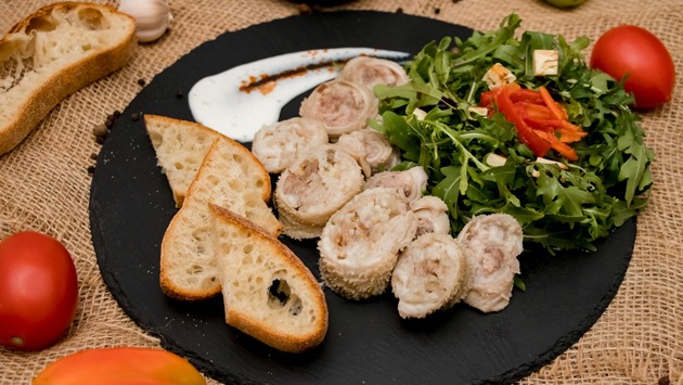 — Сейчас в заведениях джерме подают в нарезанном виде, с овощами, зеленью и несколькими видами соусов. Я использую тузлук и аджику из томата, — рассказывает Мухаммад. — Для красоты и большей аппетитности нарезанные кружочки можно поджарить на сухой сковороде до легкой золотистости.