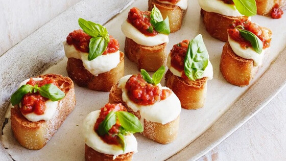 С ПЛАВЛЕНЫМ СЫРОМ, ЧЕСНОКОМ И КИВИ Нам понадобится: Плавленый сыр 300 г Чеснок 3 зубчика Багет 1 шт. Листья салата Киви 3 шт. Майонез по вкусу Готовим: Охладите плавленый сыр в морозильной камере около 30 минут, затем натрите на крупной терке. Измельчите чеснок и добавьте к сыру. Полученную массу смешайте с майонезом. Киви и лимон нарежьте тонкими кружочками. На кусочки багета выложите промытые листья салата, затем выложите сырную массу и сверху положите кружочки лимона и киви. КАНАПЕ С ЯЙЦОМ И СЕМГОЙ Нам понадобится: Хлеб 10 кусочков Ломтики красной рыбы 10 шт. Яйца 5 шт. Масло по вкусу Лимонный сок 1 половинка лимона Зеленый лук Красная икра Готовим: Черный хлеб нарежьте на тонкие, небольшие квадратики и смажьте сливочным маслом. Сверху посыпьте измельченным луком. Выложите на каждый кусочек ломтик семги и сбрызните лимонным соком. Яйца нарежьте кольцами и выложите сверху. Сверху украсьте красной икрой и веткой укропа. САЛАТ ИЗ ТУНЦА НА ТОСТАХ Нам понадобится: Консервированный тунец 1 банка Яйца 3 шт. Маринованные огурчики 4 шт. Майонез 3 столовые ложки Зелень по вкусу Хлеб 10 кусочков Готовим: Такая закуска идеально подойдет для праздничного стола. Для начала приготовьте салат из тунца и яиц. Разомните рыбу из консервированной банки вилкой и слейте жидкость из банки. Мелко нарежьте огурцы и перемешайте с тунцом. Вареные яйца измельчите и добавьте к смеси. Полученную смесь заправьте майонезом, добавьте соль и перец по вкусу. Хлеб подсушите в духовке. Затем выложите на ломтики яичный салат, украсьте огурцом и веточкой укропа. ПРАЗДНИЧНЫЕ КАНАПЕ С КОЛБАСОЙ Нам понадобится: Зерновой хлеб 1 багет Вареная колбаса 200 г Помидоры черри 1 веточка Сливочный сыр 150 г Листья салата 1 пучок Петрушка по вкусу Готовим: Багет нарежьте ломтиками и смажьте каждый ломтик сливочным сыром, положите сверху листья салата, хорошо промойте помидоры и разрежьте пополам. Возьмите зубочистки и насадите на них тонкие ломтики колбасы и половину помидорки. Вставьте нанизанные зубочистки в ломтики багета. СО ШПРОТАМИ Нам понадобится: Багет 1 шт. Майонез 2 столовые ложки Сметана 2 столовые ложки Чеснок 5 зубчиков Огурец 1 шт. Помидор 1 шт. Шпроты в масле 2 упаковки Зелень по вкусу Соль и перец Готовим: Пропустите чеснок через пресс, добавьте к сметане и майонезу, соль и перец по вкусу. Выложите шпроты на тарелку, чтобы стекло масло. Багет нарежьте ломтиками и поджарьте с маслом на сковороде до румяной корочки. Каждый ломтик смажьте чесночным соусом, сверху положите рыбу, кружок огурца и половинку помидора. Украсьте зеленью и подавайте теплыми. С ЯЙЦОМ, ЧЕСНОКОМ И МАЙОНЕЗОМ Нам понадобится: Батон 1 шт. Яйца 4 шт. Чеснок 2 зубчика Майонез 4 столовые ложки Укроп по вкусу Соль и перец по вкусу Готовим: Подрумяньте кусочки батона. Натрите вареные яйца, посолите и поперчите. Чеснок пропустите через пресс и смешайте с майонезом. Данной смесью намажьте ломтики батона. Затем посыпьте смесью из натертых яиц. Выложите готовые бутерброды и украсьте зеленью. Хрустящие и ароматные бутерброды с яйцом, чесноком и майонезом очень понравятся вашим гостям. С ДОМАШНЕЙ МАЛОСОЛЬНОЙ СЕЛЕДКОЙ Нам понадобится: Свежемороженая селедка 1 шт. Соль крупного помола 1 чайная ложка Перец горошком 1 столовая ложка Лавровый лист 2 шт. Гвоздика 2 шт. Вода 0.5 стакана Красный лук 1 шт. Бородинский хлеб 1 булка Хрен 3 столов