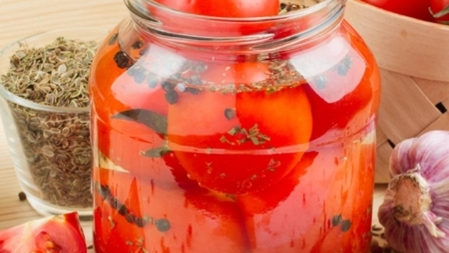 Как только маринад закипит, сразу заливаем им помидоры и закатываем баночки крышками. Вместе с помидорами в каждую баночку можно положить базилик или зелень сельдерея, с такой ароматной зеленью томаты отлично «дружат».