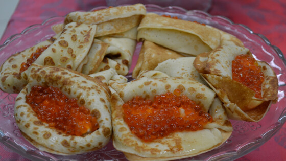 «Ну а первую порцию блинов шеф подарил журналистам. Выглядит очень аппетитно. На вкус, думаю, еще великолепнее. Действительно очень вкусно!».