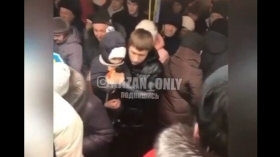 Ролик сняла девушка, которая ездила на праздник. На кадрах видно, что улицу переходит огромная толпа людей. "Пробка" из людей такая плотная, что родители несут детей на руках.