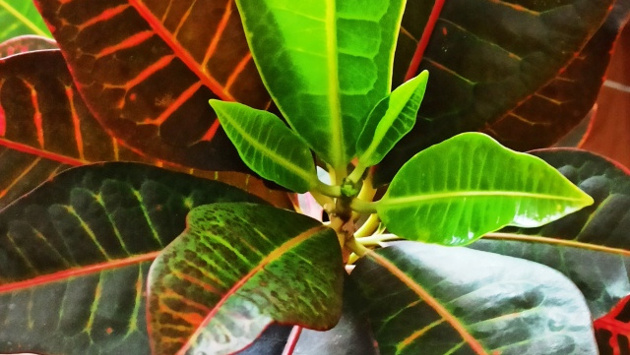 Кротоны — это род тропических кустарников и деревьев, а кодиеумы — их ближайшие родственники (в этом роду только 17 видов). И всего лишь один приспособлен для выращивания в домашних условиях, это кодиеум пёстрый (Codiaeum variegatum), который в простонародье называют кротон.