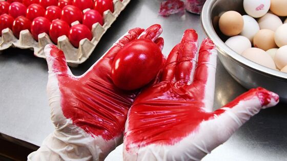 Красить яйца на Пасху — одна из самых древних христианских традиций. По преданию, в багровый цвет окрасилось белое куриное яйцо, с которым Мария Магдалина пришла к императору Тиберию рассказать о воскрешении Христа.