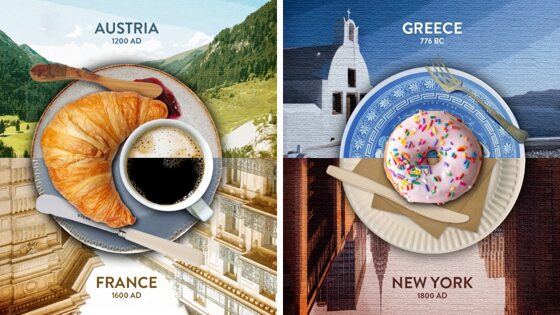 Откуда, по нашему мнению, происходят круассаны: Франция. Откуда на самом деле круассаны: Австрия.