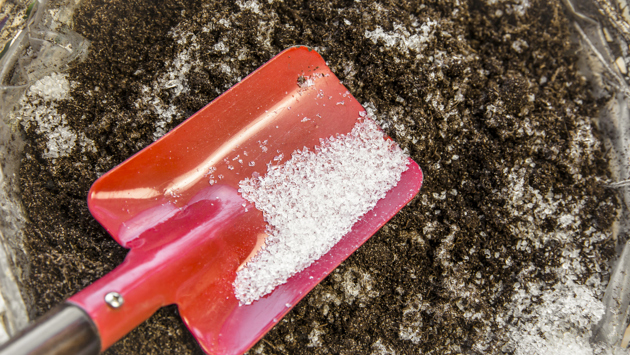 . Разбухший гидрогель был уложен в борозды посередине грядок и также перемешан с землей. Овощи росли рядами с двух сторон от борозды с гелем. Но этот эксперимент не увенчался успехом: лук и морковь получились мелкие, патиссоны вообще не завязались, а картошка была мелкой с низкой урожайностью.