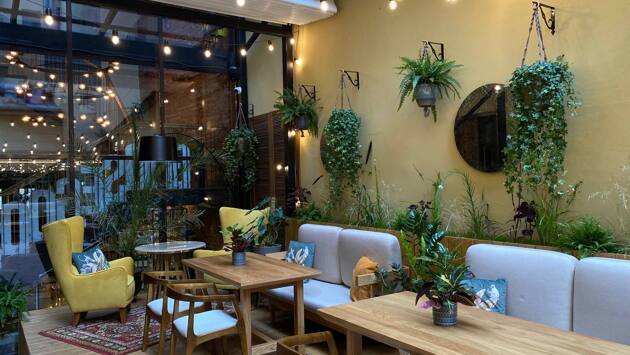 Локация веранды неожиданная. Гуляя по Большой Конюшенной улице вряд ли можно представить, что буквально в ста метрах от нее может скрываться закрытое пространство на 25 посадочных мест с живыми растениями, элегантными итальянскими блюдами и продуманной коктейльной картой.