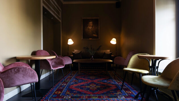 С помощью шеф-повара Павла Павлушина вместо попкорна в «Кино» предлагается авторский стрит-фуд и напитки, которые можно взять с собой в зал, а во время ночных кинопоказов кафе превращается в speakeasy-бар. Возможности кинотеатра тоже расширились, теперь тут можно провести частное мероприятие, дополнив показ вечеринкой в баре или местном VIPе – Drunkoff Room.