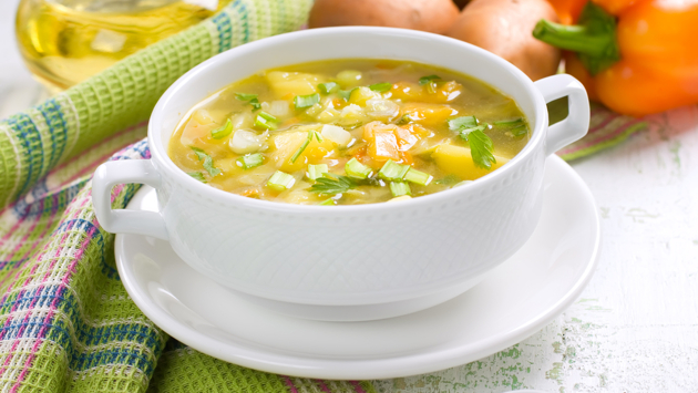 На втором месте по полезности идет овощной суп на мясном бульоне. В состав такого супа должны входить стручковая фасоль, кабачок и сельдерей.