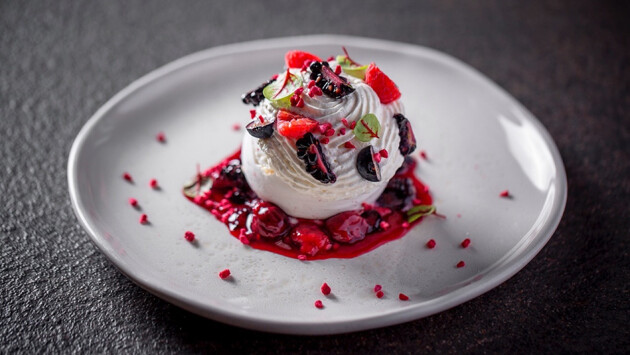 Среди десертов потенциальные хиты нового меню - "Павлова" с кремом матча и желеиз юдзу (450 р.) и нежное тирамису с гуавой и розой (390 р.).