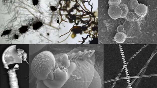 Исследования показывают, что исследователи Марса, ищущие признаки древней жизни, могут быть обмануты ископаемыми образцами, созданными химическими процессами.<br>В одном исследовании говорится, что камни на Марсе могут содержать многочисленные типы небиологических отложений, которые похожи на те виды окаменелостей, которые могут быть найдены, если на планете когда-либо существовала жизнь.<br>Исследователи говорят, что выделение этих ложных окаменелостей отдельно от того, что может свидетельствовать о наличии древней жизни на поверхности Марса, которая могла быть временно обитаемой четыре миллиарда лет назад, является ключом к успеху нынешних и будущих миссий.<br>Астробиологи из университетов Эдинбурга и Оксфорда рассмотрели свидетельства всех известных процессов, которые могли создать реалистичные отложения в горных породах на Марсе.<br>Они определили десятки процессов - многие из которых, вероятно, еще не обнаружены, - которые могут создавать структуры, имитирующие микроскопические простые формы жизни, которые, возможно, когда-то существовали на Марсе.<br>Среди реалистичных образцов, которые могут создавать эти процессы, есть отложения, которые выглядят как бактериальные клетки и молекулы на основе углерода, которые очень напоминают строительные блоки всей известной жизни.<br>Поскольку признаки жизни могут быть очень похожи на неживые процессы, происхождение любых ископаемых образцов, найденных на Марсе, вероятно, будет очень неоднозначным, говорит команда.<br>Они призывают к более широким междисциплинарным исследованиям, чтобы пролить больше света на то, как реалистичные отложения могут образовываться на Марсе, и тем самым помочь поиску свидетельств древней жизни там и в других частях Солнечной системы.<br>Исследование опубликовано в Journal of the Geological Society.<br>На снимке: Составное изображение, показывающее некоторые типы окаменелостей, образованные в результате химических реакций, которые можно было найти на Марсе.