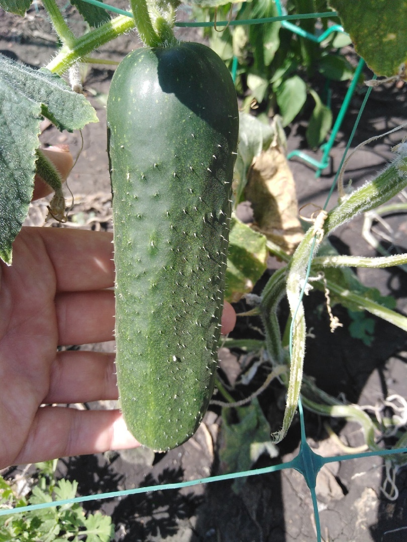 12 июля попробовали первый огурец 'Приятель'. Стройный, красивый огурец с приятным вкусом, без горечи. Мне он очень понравился.