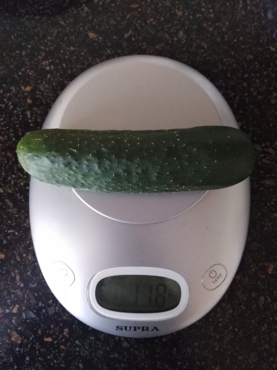 Весил мой огуречик — 118 г. Это средний вес всех огурцов 'Приятель'.