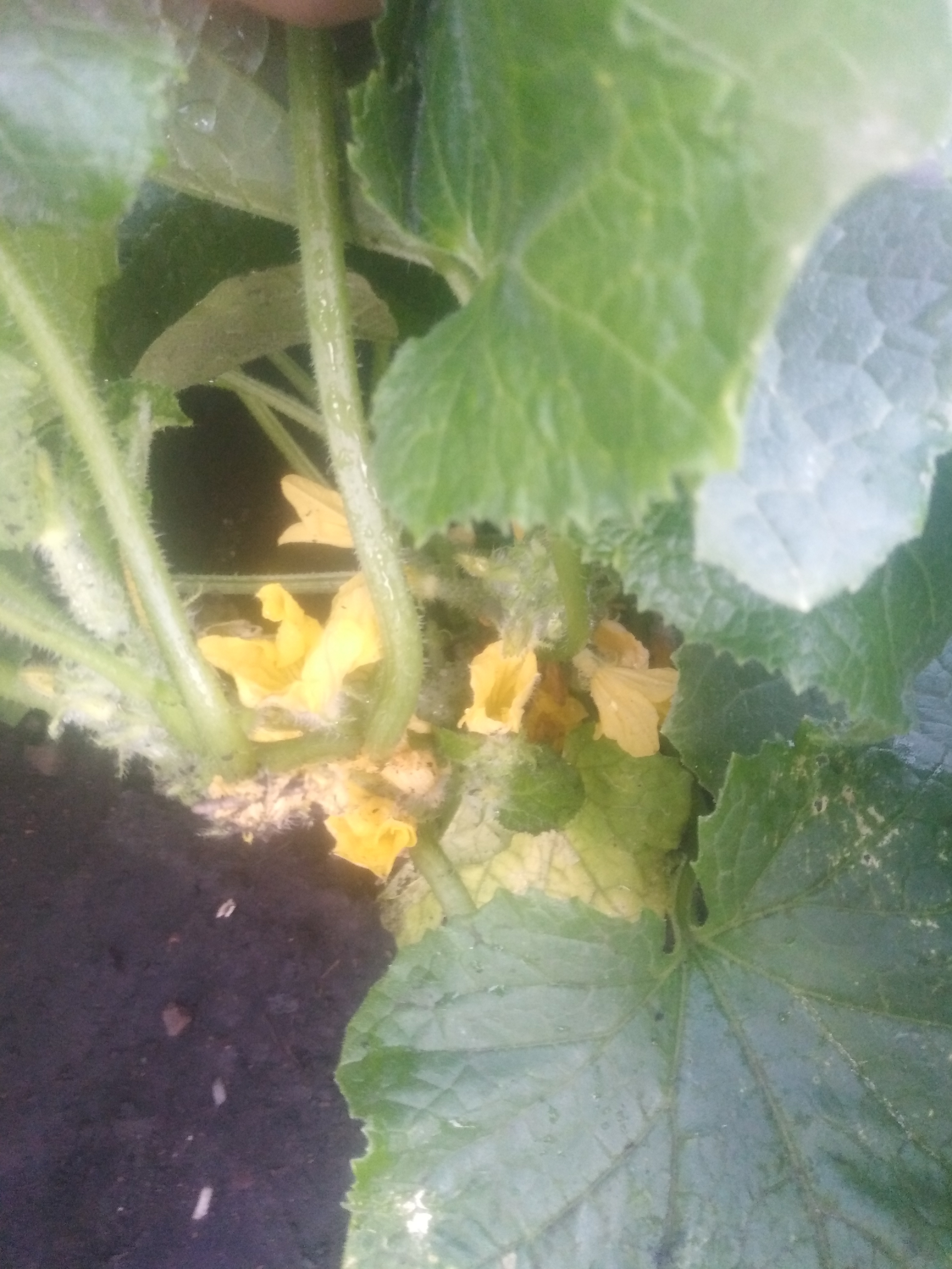 Цветение у огурца 'Приятель' было очень хорошее. Одновременно по 8-10 цветков отмечалось у огурца. Цветки завязей огурца длиной до 3 см, ярко-желтого цвета.