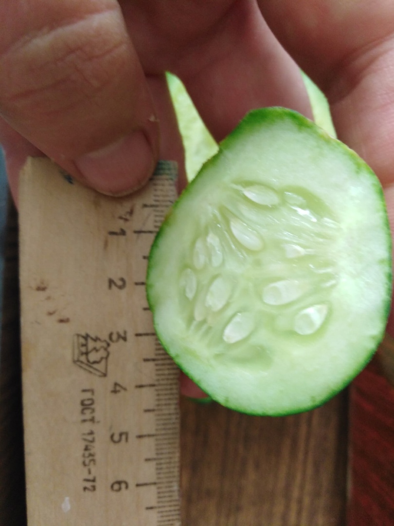 В поперечном разрезе огурец 'Кустик-хрустик' почти 5 см.