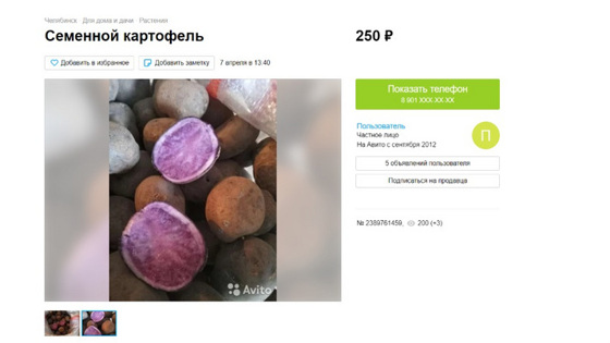 «Продается картофель семенной в Ленинском районе Челябинска. Сорт — Обама. Стоимость 250 рублей», — говорится в объявлении продавца на сайте «Авито».