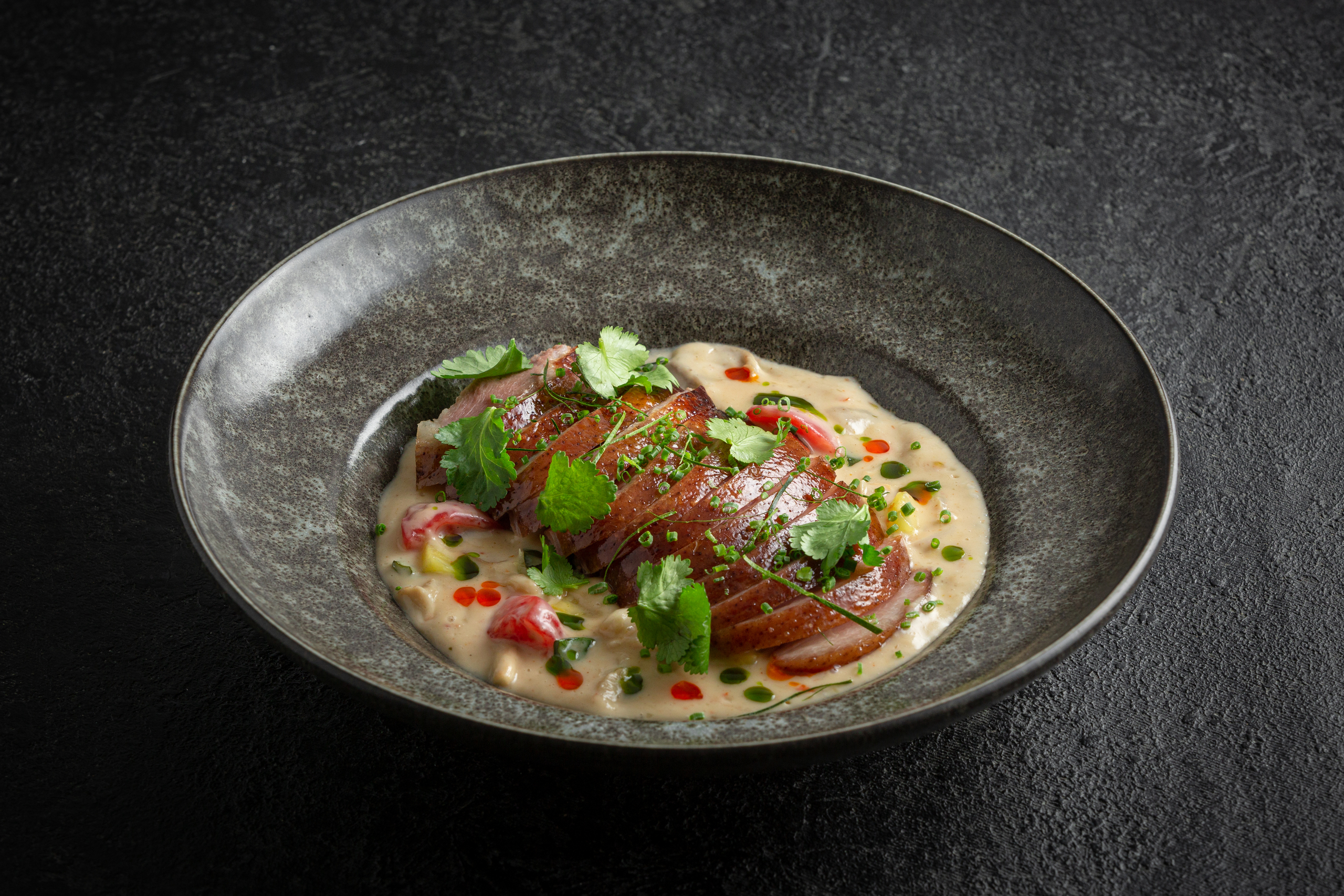 Красный карри с уткой входит в число самых популярных тайских гастрономических изысков. И в честь Тайского Нового года шеф-повар Денис Прохоров представит авторский твист на популярное блюдо, заменив обычное утиное мясо уткой по-пекински и добавив сочный ананас и экзотический личи. Блюдо сервируют с жасминовым рисом, лаймом, перцем чили, кинзой и зеленым луком.
