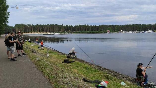 В честь Дня рыбака на празднике прошла рыболовная олимпиада сразу в трех дисциплинах. Спортсмены-рыбаки ловили на поплавочную удочку, на втором участке - на донную удочку и на третьем - спиннингом с берега.
