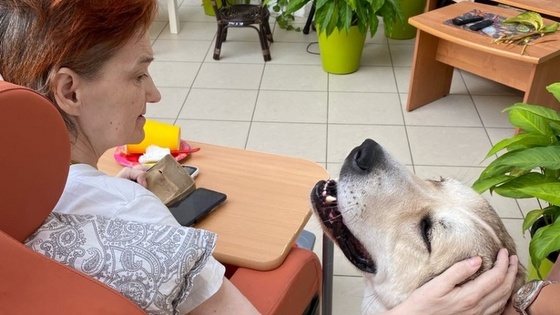 Пациентов Зеленоградского хосписа навестила собака-волонтёр Стеша