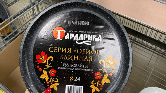 В супермаркетах Екатеринбурга появились сковородки «Гардарика» из Мелитополя. Об этом корреспонденту URA.RU рассказал читатель.