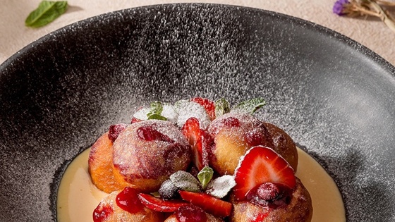 Не забыли и любителей сладкого. Картина Маковского "Варка варенья" вдохновила кулинаров на создание пончиков с бещевской вишней и ванильным соусом. Этот сорт вишни был выведен Алексеем Бещевым в 1930-е. В честь нее в Ширяево (Жигулевские горы) каждый год проводится фестиваль вишневых пирогов. На картине показан скромный быт пожилой пары - супруги варят варенье, а вокруг - мягкий свет, гармония, умиротворение. И такие же ощущения - тепло, уют, нежность и воспоминания детства - получают те, кто попробовал этот десерт.