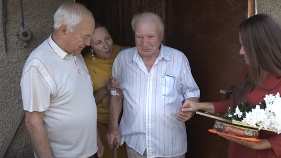 Член Совета депутатов г.о. Красногорск Виталий Ласкавец поздравил с Днем села коренного жителя Петрово-Дальнего Михаила Кузнецова.