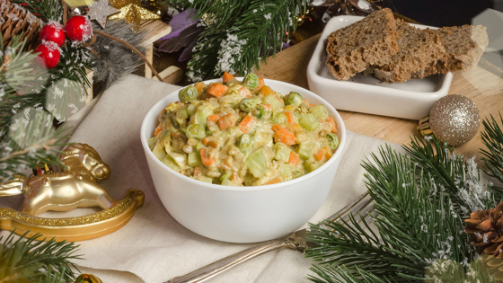 Держать их рекомендуется при температуре не выше 2–4 °С, но на практике чаще всего заправленные салаты стоят на новогоднем столе при комнатной температуре несколько часов.